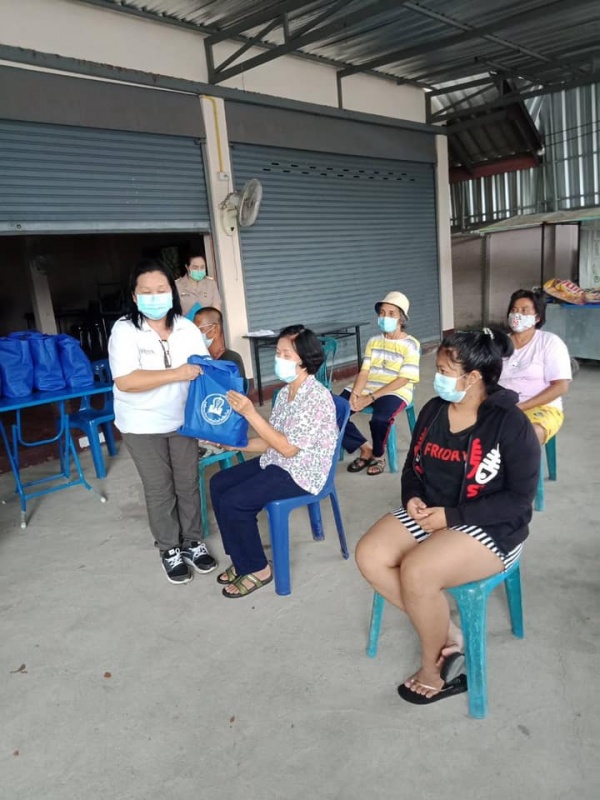 เจ้าหน้าที่ฝ่ายสวัสดิการสังคม สำนักปลัด นำถุงยังชีพมอบให้กับพี่น้องประชาชน ที่ได้รับผลกระทบจากการแผ่ระบาดของโรคโควิด-19