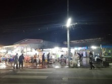 เจ้าหน้าที่กองสาธารณสุขและสิ่งแวดล้อม ฉีดล้างน้ำยาทำความสะอาดตลาดสดสันโค้ง ต.ทรายมูล เพื่อรณรงค์ป้องกันการแพร่ระบาดของโรคติดเชื้อCOVID19และโรคอื่นๆ ล้างตลาดสดสันโค้ง