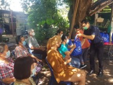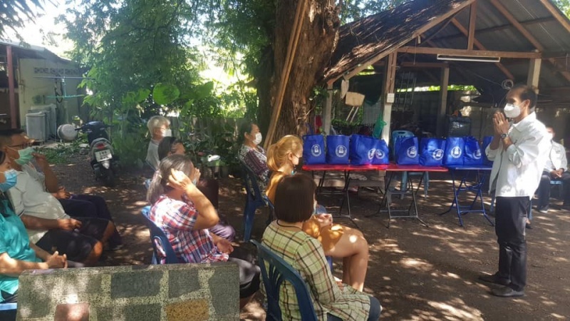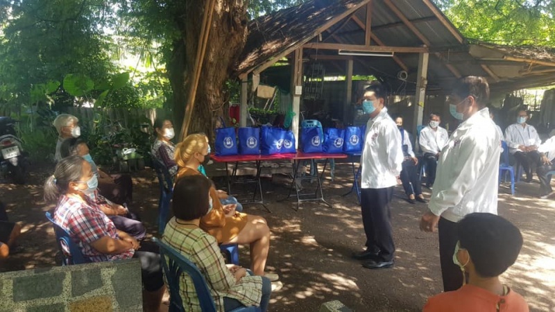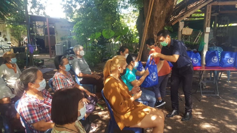 มอบถุงยังชีพ ที่ได้รับการสนับสนุนจาก อบจ.เชียงใหม่ ให้กับประชาชนบ้านสันโค้งใหม่ หมูที่ 2 ตำบลทรายมูล อำภอสันกำแพง จังหวัดเชียงใหม่