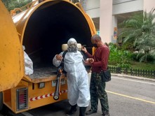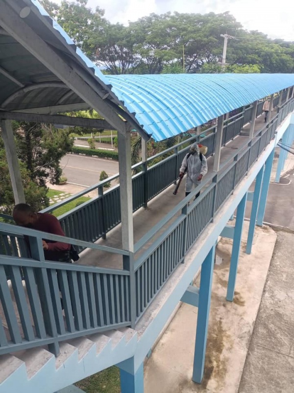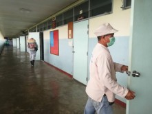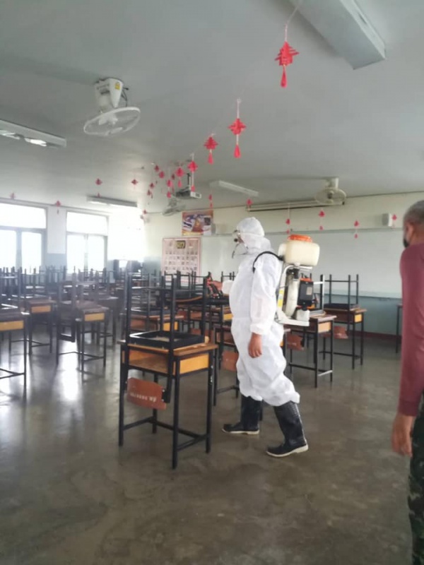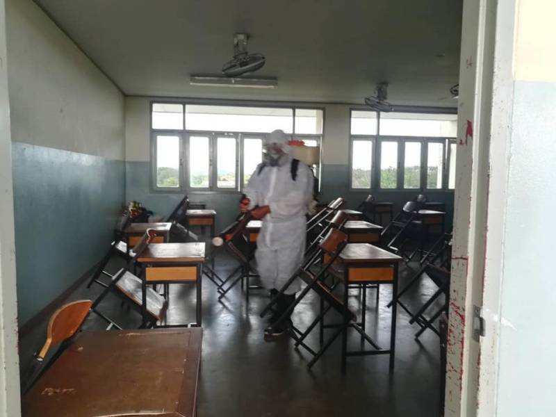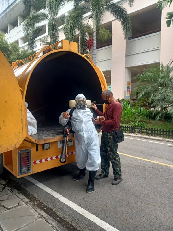 เจ้าหน้าที่กองสาธารณสุขและสิ่งแวดล้อม ดำเนินการพ่นละอองULVเพื่อควบคุมยุงลายพาหะโรคไข้เลือดออก ในโรงเรียนสันกำแพง