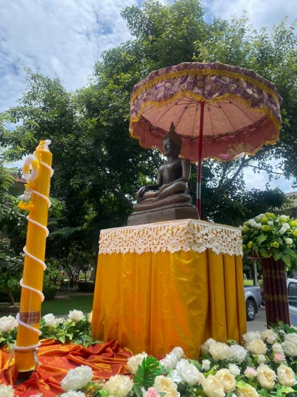 ว่าที่ร้อยตรีปัญญา อุ่นประดิษฐ์ นายกเทศมนตรีตำบลสันกำแพง พร้อมด้วยคณะผู้บริหาร สมาชิกสภา พนักงานเทศบาล สำนักปลัดฯ ร่วมกันถวายเทียนพรรษาไปยังวัดดอนมูล ตำบลทรายมูล อ.สันกำแพง
