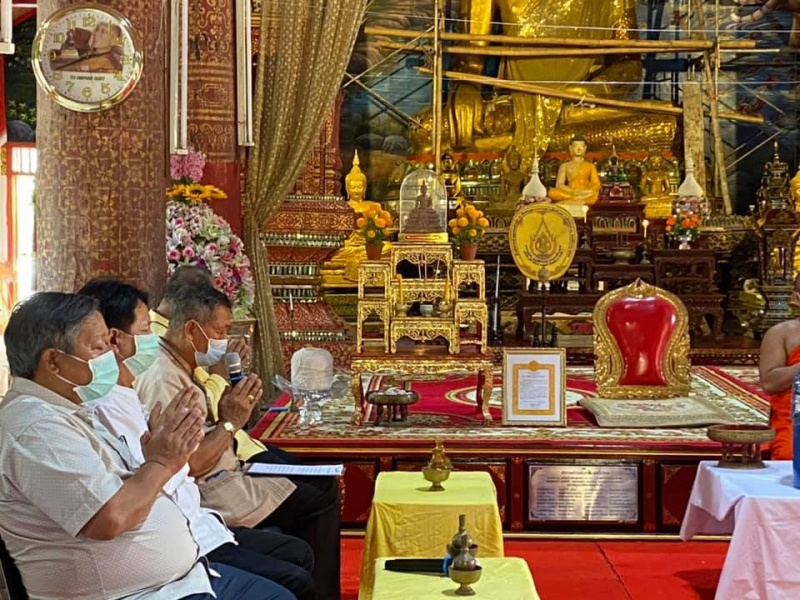 ว่าที่ร้อยตรีปัญญา อุ่นประดิษฐ์ พร้อมด้วยคณะผู้บริหาร สมาชิกสภา พนักงานเทศบาล สำนักปลัดฯ ถวายเทียนพรรษาไปยังวัดทรายมูล หมู่ที่7ตำบลทรายมูล อ.สันกำแพง