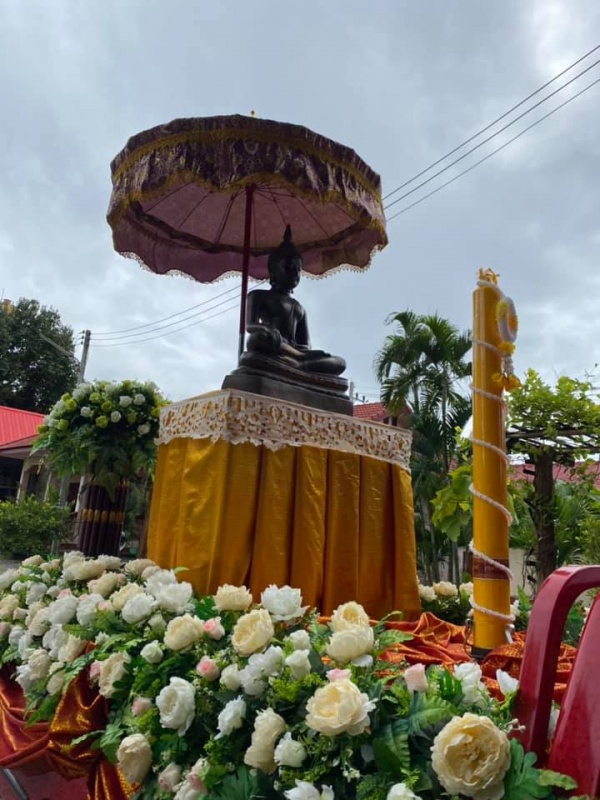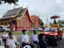 ว่าที่ร้อยตรีปัญญา อุ่นประดิษฐ์ นายชาครีย์ ขัติรัตน์ รองนายกเทศมนตรีตำบลสันกำแพง พร้อมสมาชิกสภาเทศบาล พนักงานกองช่าง นำขบวนต้นเทียนพรรษา ถวายไปยังวัดจันทรวิโจน์ หมู่ที่1 ตำบลสันกำแพง