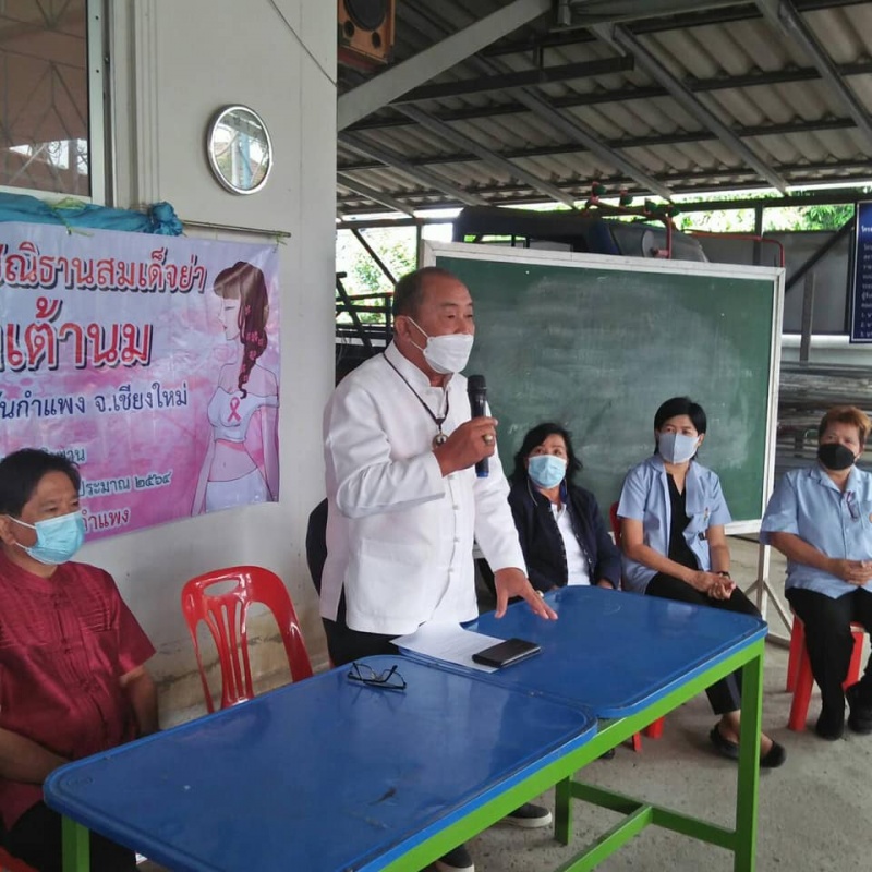 นายชาครีย์ ขัติรัตน์ รองนายกเทศมนตรีตำบลสันกำแพงปฏิบัติราชการแทนนายกเทศมนตรี ได้เชิญวิทยากรจากโรงพยาบาลส่งเสริมสุขภาพบ้านตลาด ตำบลสันกำแพง มาให้ความรู้ต้านภัยมะเร็งเต้านม