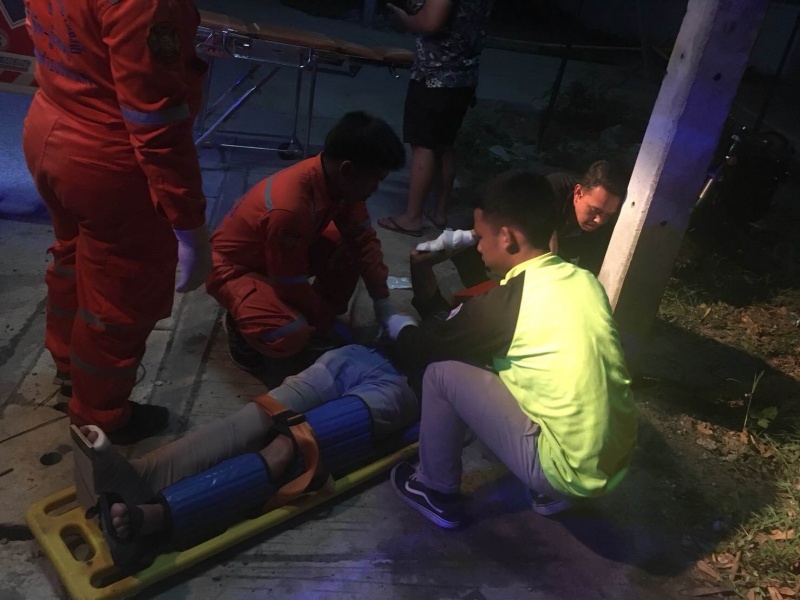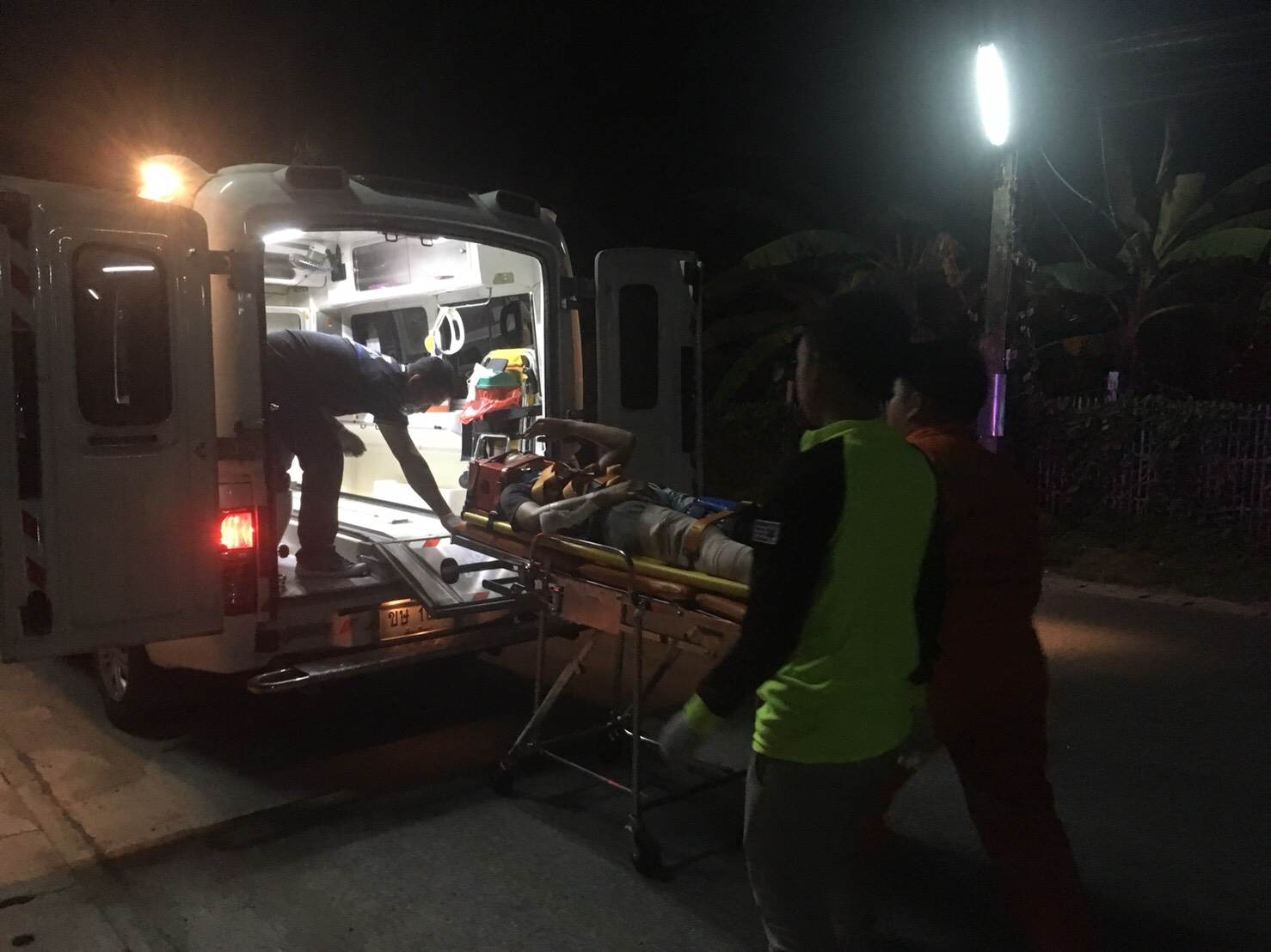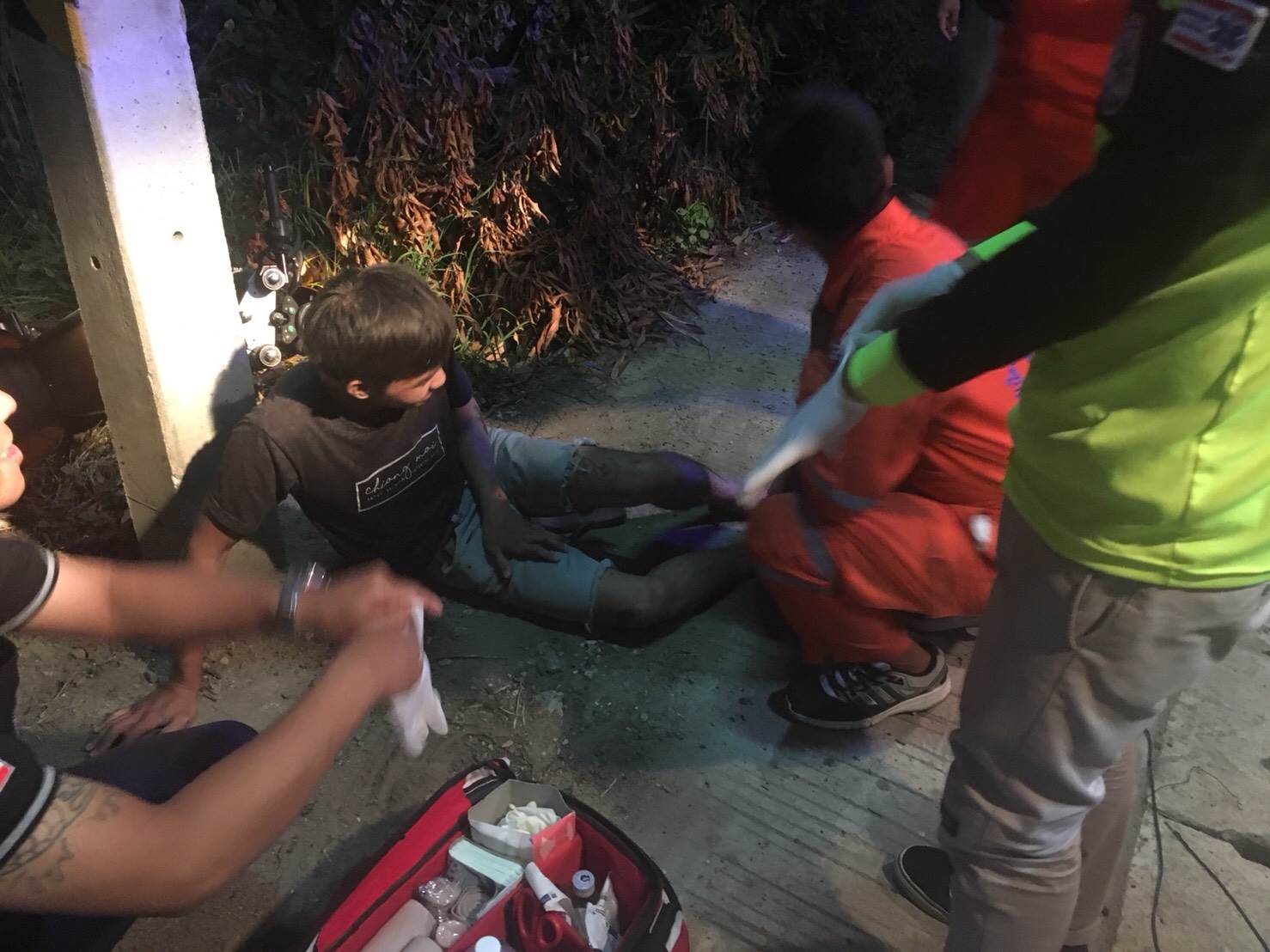 วันที่ 10/5/61 เวลา 00.15น. รับแจ้งจาก สภ.สันกำแพง ตรวจสอบอุบัติเหตุ ว.40 จยย แฉลบล้มเอง บ้านหัวทุ่ง จามจุรีจัดรถกู้ชีพพร้อมเจ้าหน้าที่และอาสาออกตรวจสอบ เบื้องต้นพบผู้บาดเจ็บชาย 1ราย ถลอกตามร่างกาย ปวดขาและแขนทั้งสองข้าง มีกลิ่นสุรา รู้สึกตัวดี จึงทำการปฐมพยาบาลเบื้องต้นและนำส่ง รพ.สันกำแพง
