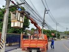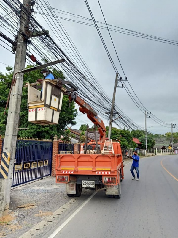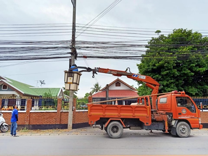 เจ้าหน้าที่กองช่าง ทต.สันกำแพง ดำเนินการซ่อมแซมไฟกิ่งสาธารณะที่ชำรุดในหมู่บ้าน หัวทุ่งม.5ต.ทรายมูล