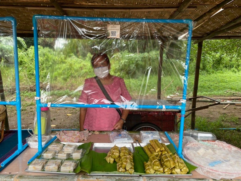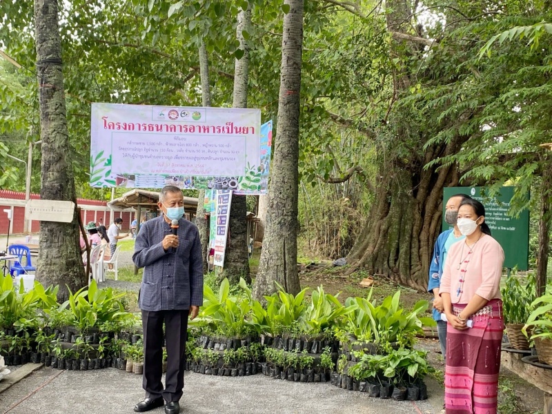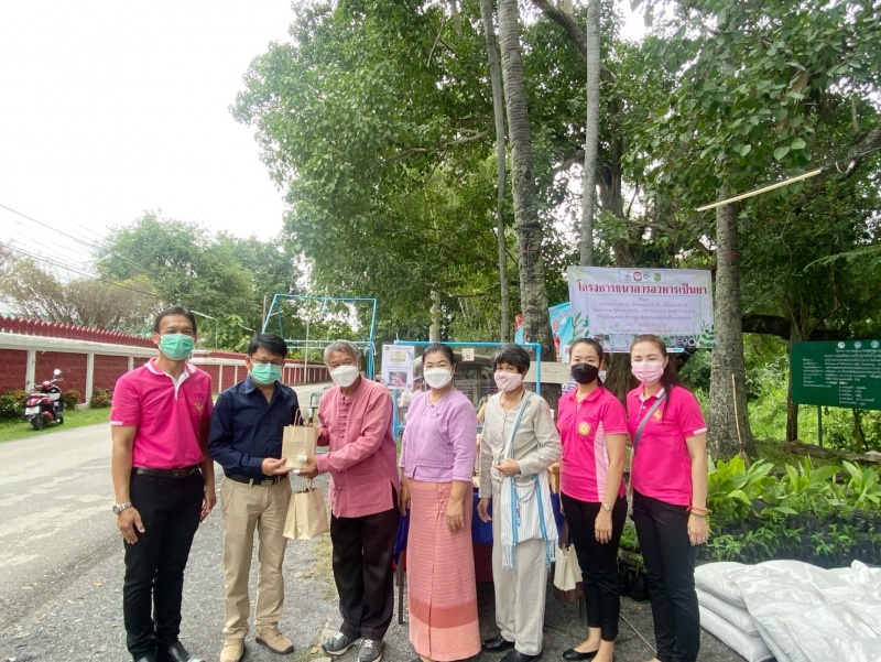 นายกเทศมนตรีตำบลสันกำแพง ประธานในการจัดกิจกรรมโครงการธนาคารอาหารเป็นยา วันที่ ๑๗ สิงหาคม พ.ศ.๒๕๖๔ ณ ตลาดพอเพียง บำาเป้ากรีนมาร์เก็ต หน้าวัดชัยชนะมงคล (ป้าเป้า)