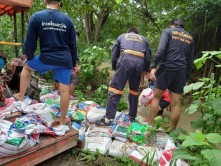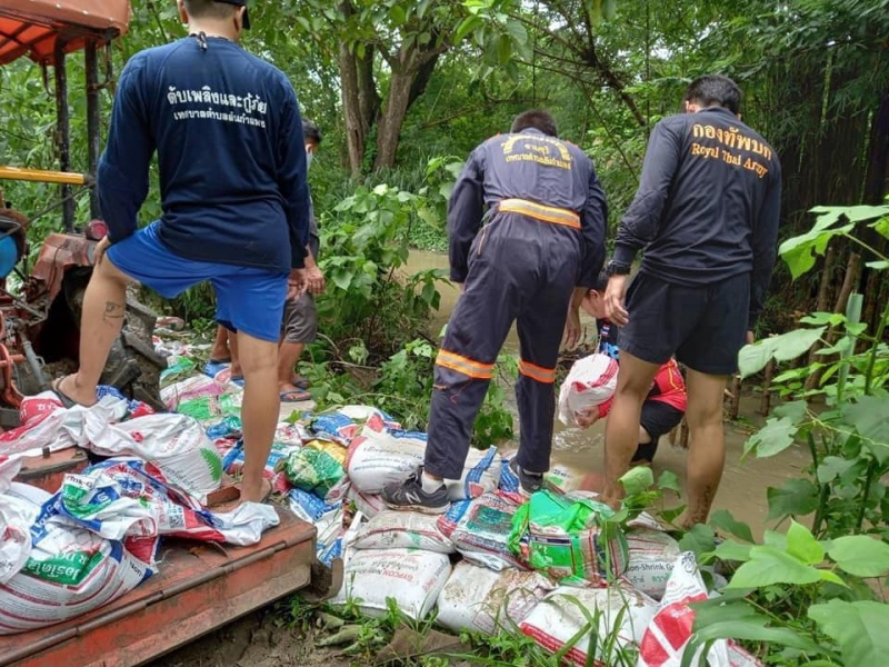 ผู้อำนวยการศูนย์ช่วยเหลือและบรรเทาสาธารณภัย มอบหมายให้เจ้าหน้าที่ป้องกันและบรรเทาสาธารณภัยฯนำกระสอบทรายมาปูทับทำพนังชั่วคราวเพื่อป้องกันน้ำท่วมที่ม.11 บ้านน้อย (กาดสุม)ต.สันกำแพง