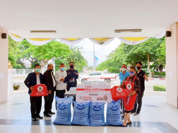 บริษัทโตโยต้ารีช จำกัด(สำนักงานใหญ่) มอบข้าวสารและน้ำดื่ม ตามกิจกรรม Toyota Stay with you เพื่อช่วยเหลือประชาชนคลัสเตอร์บ้านสันไร่ ม.10 ตำบลสันกำแพง