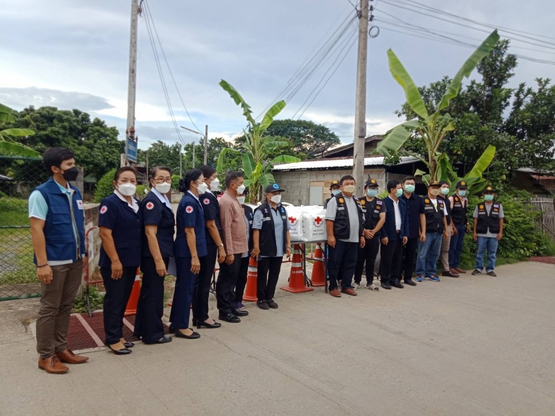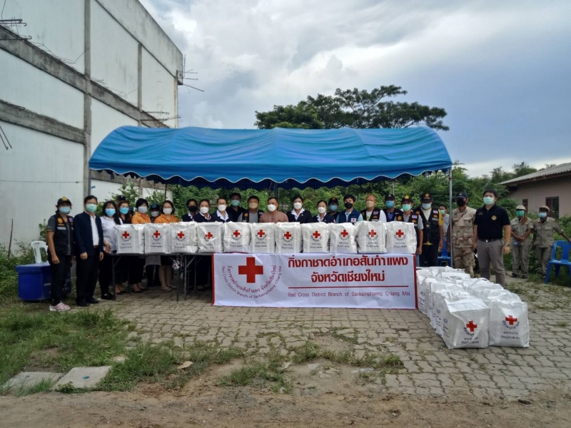 นายชัยณรงค์ นันตาสาย นายอำเภอสันกำแพงและนายกกิ่งกาชาดอำเภอสันกำแพง เข้ามอบถุงยังชีพให้กับประชาชนคลัสเตอร์บ้านสันไร่ หมู่ที่ 10 ต.สันกำแพง