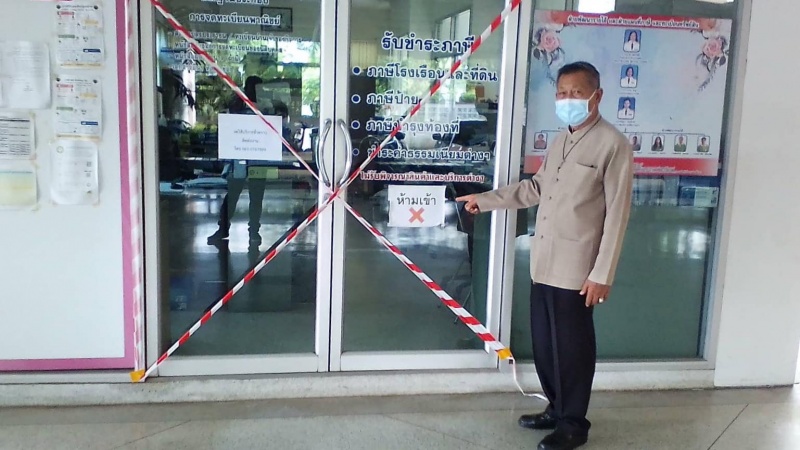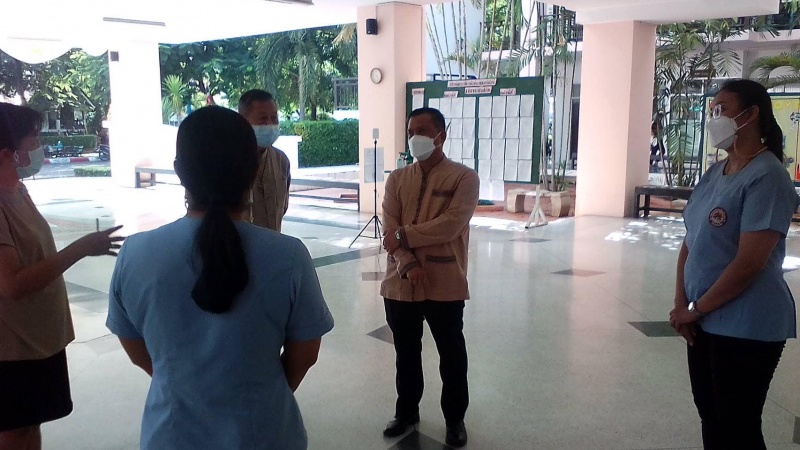 นายอำเภอสันกำแพง ตรวจเยี่ยมและให้กำลังใจ รวมทั้งมอบแนวทางในการปฏิบัติงานของคณะผู้บริหาร ในการบริหารจัดการเพื่อป้องกันควบคุมโรคอุบัติใหม่ COVID-19 ณ สำนักงานเทศบาลตำบลสันกำแพง