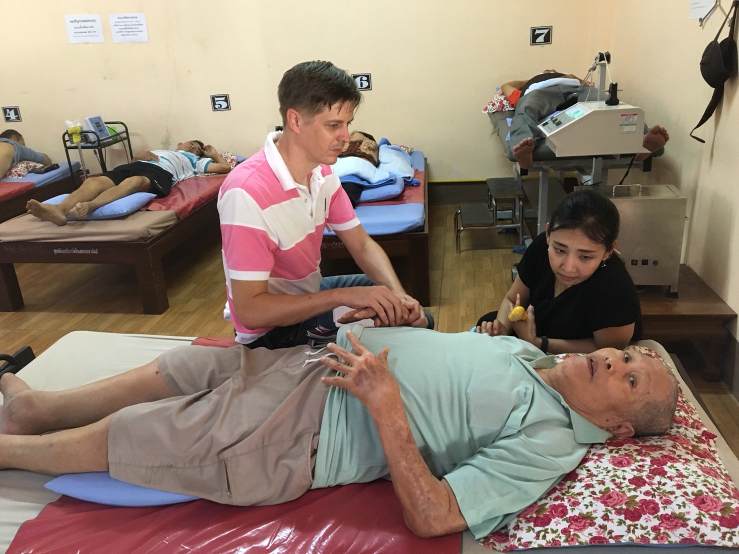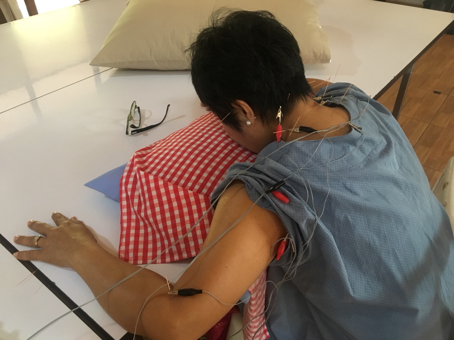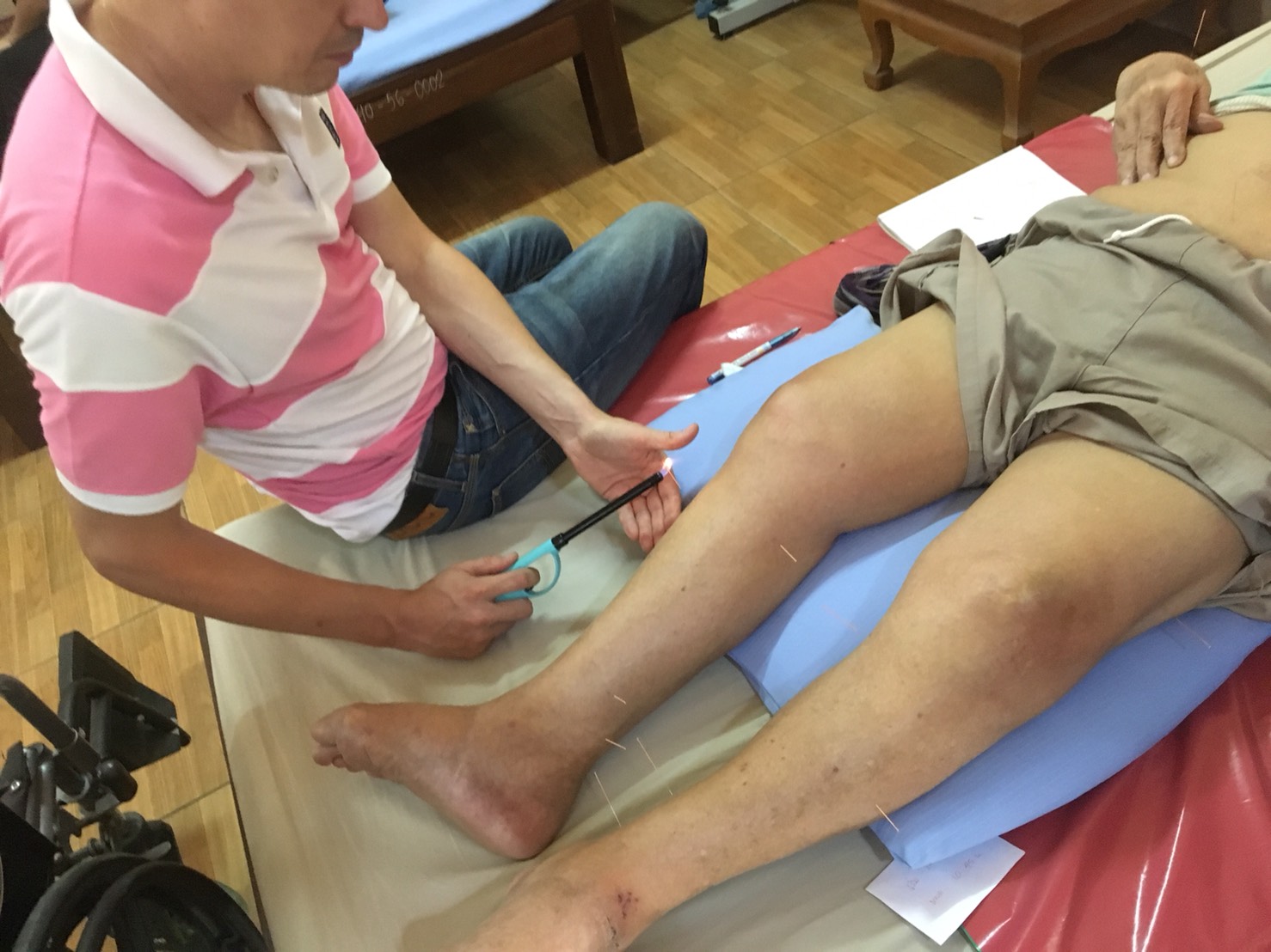 Mr.Oliver ผู้เชี่ยวชาญทางด้านการแพทย์ฝังเข็ม เพื่อการรักษา จากโรงพยาบาลแมคคอร์มิค ทำหัตถการให้กับผู้ป่วยที่มารับการกายภาพบำบัดที่ศูนย์ส่งเสริมสุขภาพชุมชนวัดโรงธรรมสามัคคี จำนวน 13 ราย ที่มีอการกล้ามเนื้ออ่อนแรง และ ปวดตามข้อต่างๆ โดยมีการฝังเข็มทุกๆเดือนๆละ 2 ครั้ง ทั้งนี้เพื่อให้ประชาชนที่ได้มีปัญหาด้านสุขภาพ สามารถที่เข้ารับการปรึกษากับผู้เชี่ยวชาญด้านฝังเข็มอย่างต่อเนื่อง