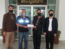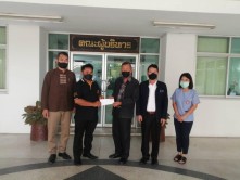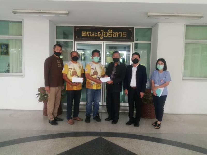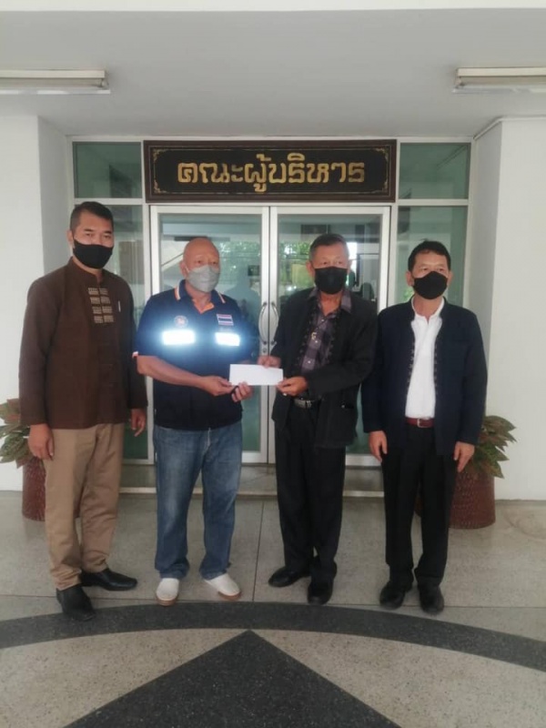 ว่าที่ร้อยตรีปัญญา อุ่นประดิษฐ์ นายกเทศมนตรีตำบลสันกำแพง พร้อมด้วยคณะผู้บริหาร เข้าร่วมพิธีมอบเช็คสั่งจ่าย ให้กับผู้ใหญ่บ้านฝ่ายปกครองท้องที่ สำหรับผู้กักตัว 4 หมู่บ้าน