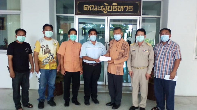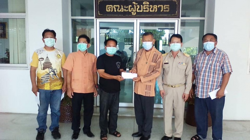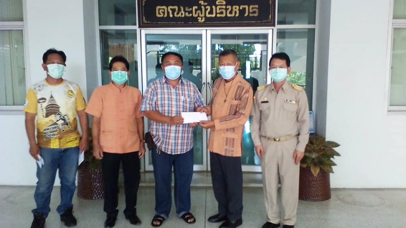 เข้าร่วมพิธีมอบเช็คสั่งจ่าย ให้กับผู้ใหญ่บ้านฝ่ายปกครองท้องที่ สำหรับประชาชน 5หมู่บ้าน ที่เข้ารับการกักตัว