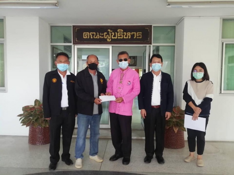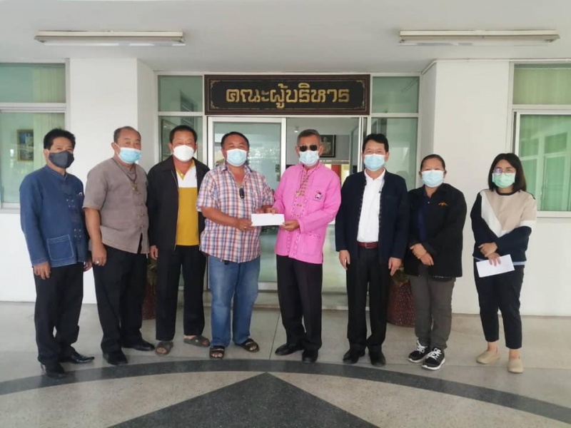 ว่าที่ร้อยตรีปัญญา อุ่นประดิษฐ์ นายกเทศมนตรีตำบลสันกำแพง พร้อมด้วยคณะผู้บริหาร เข้าร่วมพิธีมอบเช็คสั่งจ่าย ให้กับผู้ใหญ่บ้านฝ่ายปกครองท้องที่ สำหรับประชาชน 6 หมู่บ้าน ที่เข้ารับการกักตัว ได้แก่