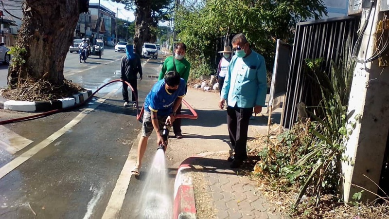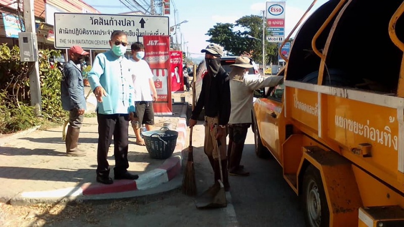 ว่าที่ร้อยตรีปัญญา อุ่นประดิษฐ์ นายกเทศมนตรีตำบลสันกำแพง ลงพื้นที่ตรวจงานทำความสะอาดไหล่ทาง ถนนสายหลักของเทศบาลตำบลสันกำแพง