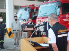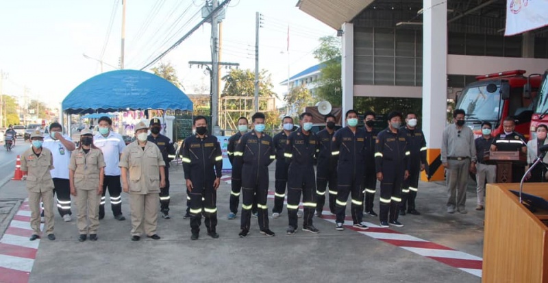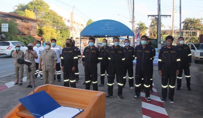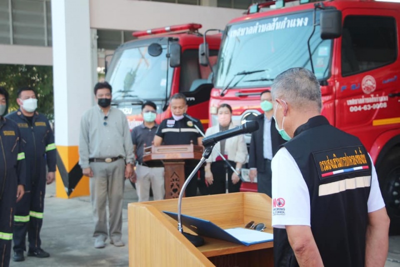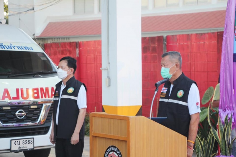 ว่าที่ร้อยตรีปัญญา อุ่นประดิษฐ์ นายกเทศมนตรีตำบลสันกำแพง ประธานเปิดงาน ศูนย์ปฏิบัติการความปลอดภัยทางถนนในช่วงเทศกาลปีใหม่ ประจำปี 2565